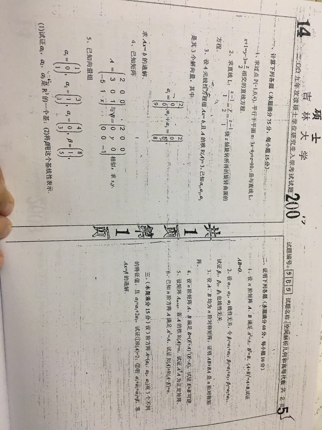 吉林大学 2009年 850空间解析几何与高等代数真题