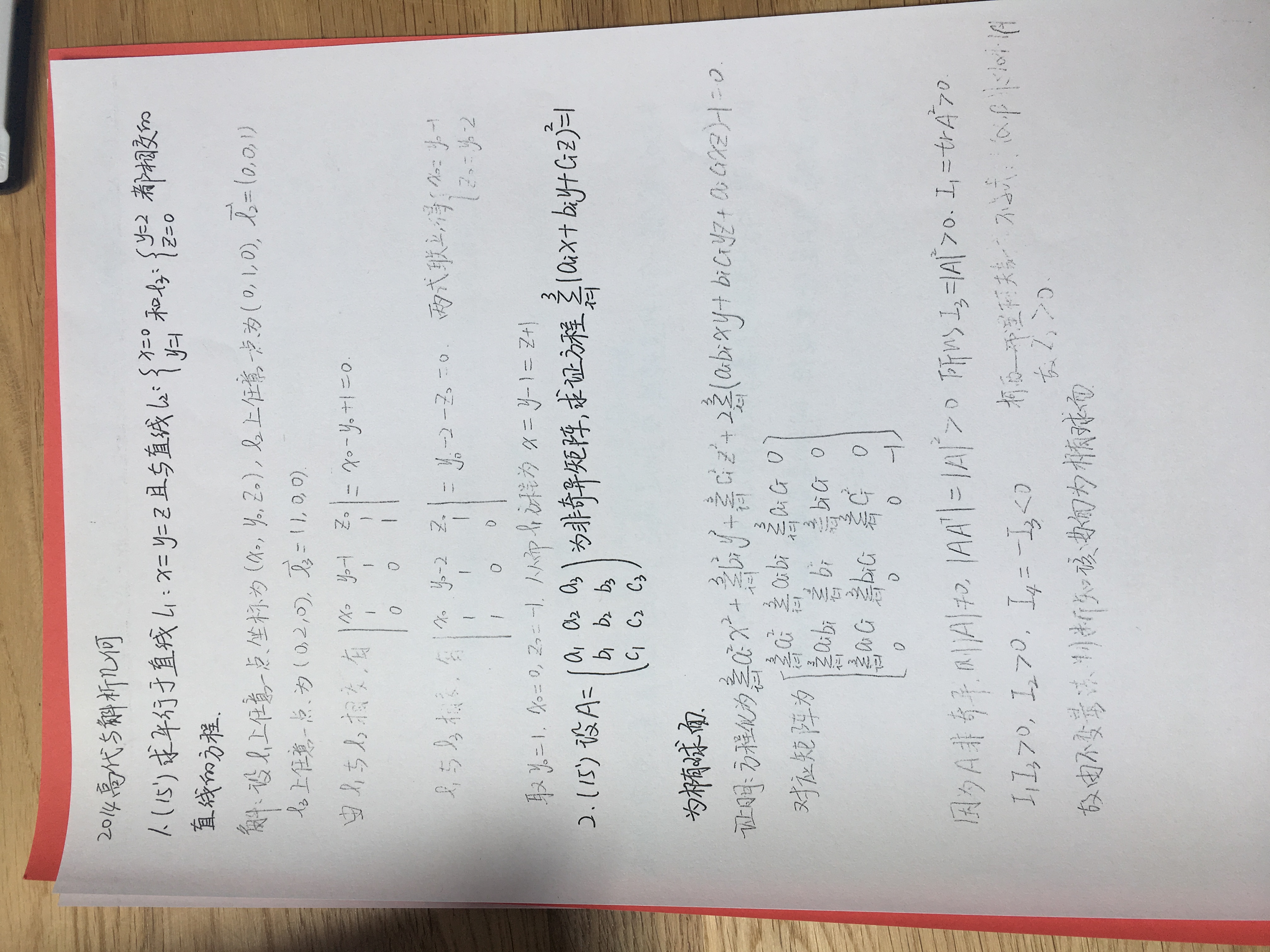吉林大学 2014年 850空间解析几何与高等代数真题