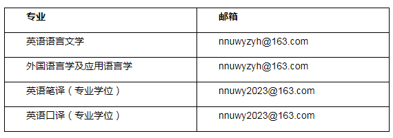 邮件格式要求:新建1个文件夹,文件夹包含8个pdf格式附件——附件1以“申请表”命名,附件2以“身份证、学生证”命名;附件3以“个人简历”命名;附件4以“本科成绩单”命名;附件5以“保研成绩排名证明”命名;附件6以“专业英语等级证书”;附件7以“个人陈述或研究计划”命名;附件8以“其他证明材料”命名,并放入同一文件夹,命名为“2024年夏令营+报考专业+生源学校+生源专业+姓名”,文件压缩为zip或rar格式。于6月15日前发送至各专业指定邮箱。邮箱如下: