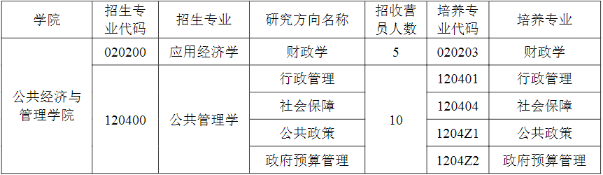 三、招收项目与名额本次夏令营选拔活动是针对我院学术型研究生和专业型硕士研究生,对于夏令营中表现优秀且符合我校推免要求的营员,将有机会通过推荐免试途径成为我院2025级硕士研究生或博士研究生(直接攻博)。所有项目均不招收上海财经大学公共经济与管理学院本科学生。1.学术学位研究生:学术学位硕士按一级学科招生,拟招收营员15名左右,学术学位硕士入学后对应的培养专业与申请毕业、学位专业详见下表。