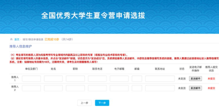 直博生申请人在报名系统内填写推荐教师的单位、姓名、有效的手机号码、邮件地址等信息。并点击【发送邮件】报名系统将自动推送推荐信填写链接,请在报名截止前与推荐教师确认填写并在线电子签署并验证。填写界面见下图: