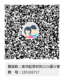 注:电子版材料接收时间为即日起至2024年 6月 18日,邮件主题统一为“南师大能源学院夏令营报名-XX大学-XX(姓名)”,电子文件名请按照“XX大学-XX(姓名)-申请表”、“XX大学-XX(姓名)-附件”格式命名。