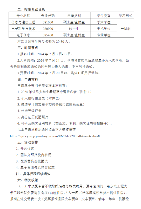2024年哈尔滨工程大学信息与通信工程学院 关于开展2024年大学生暑期夏令营活动的通知
