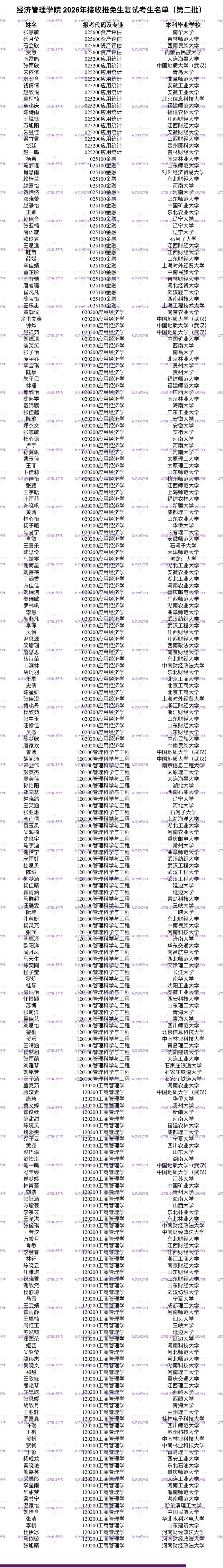 经济管理学院2026年接收推免生复试考生名单(第二批)