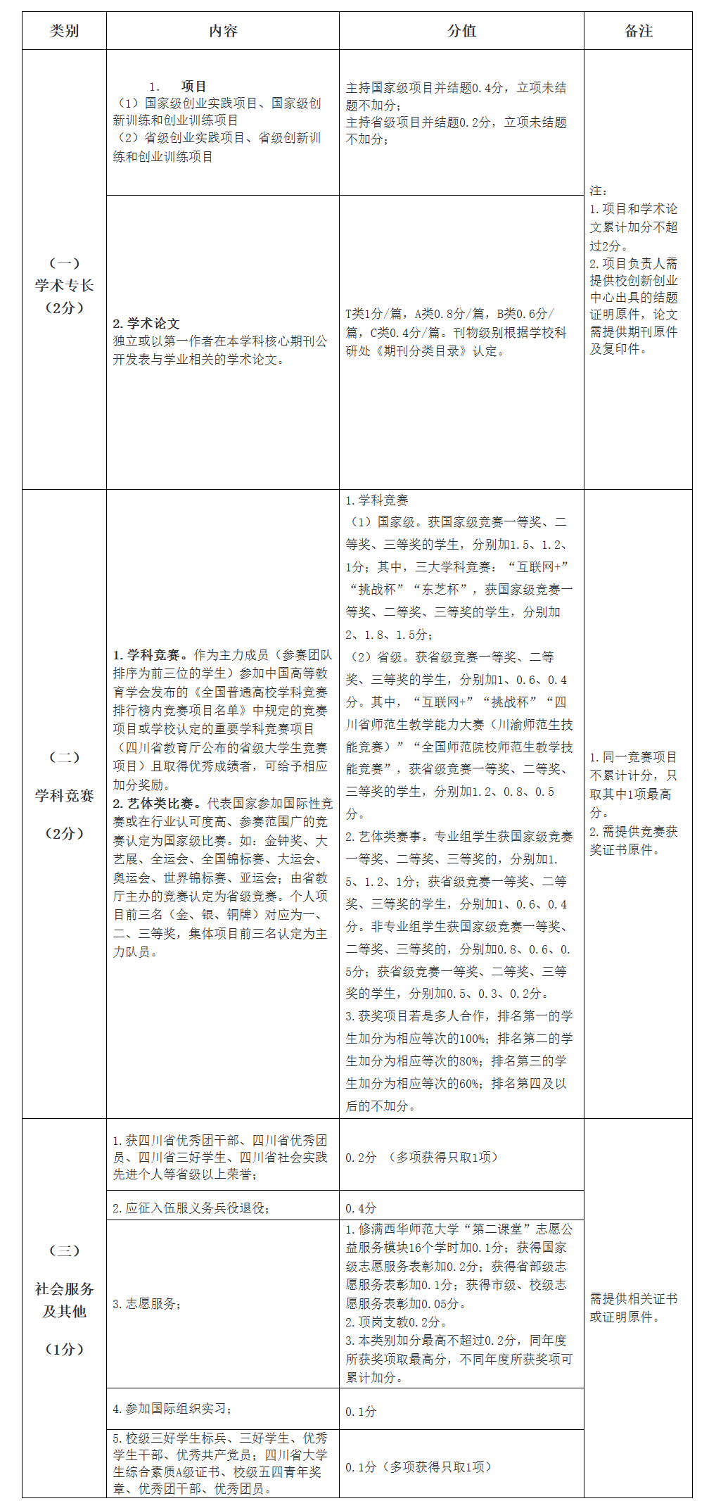 1.附加分加分项目严格按照西华师范大学推荐免试攻读研究生附加分加分项执行;