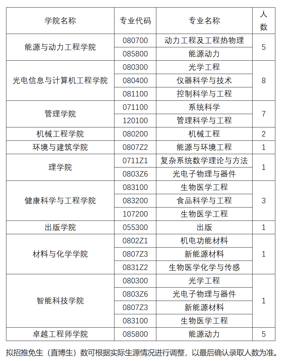 2、招收直博生专业及名额可查看推免服务系统中专业目录,具体见下表。