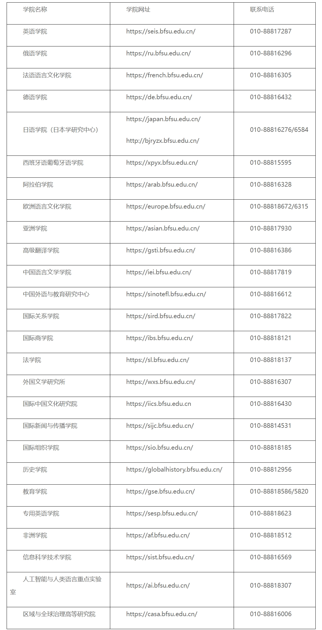北京外国语大学研究生招生办公室电话:010-88816246/7925;