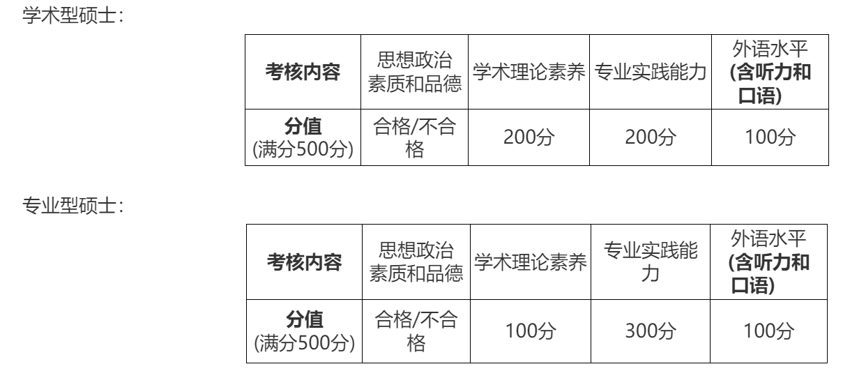 复试考生一人一题、从题库随机抽选。除试题外,复试小组专家可根据具体情况进行追问。具体内容由各复试小组在保证公平性、科学性基础上,依据专业特点和实际情况制定,复试考核内容分值如下表所示: