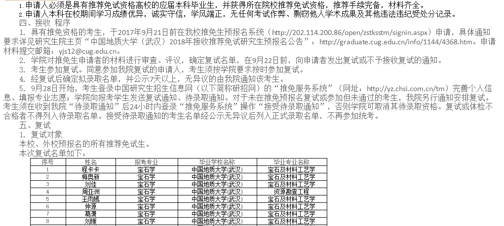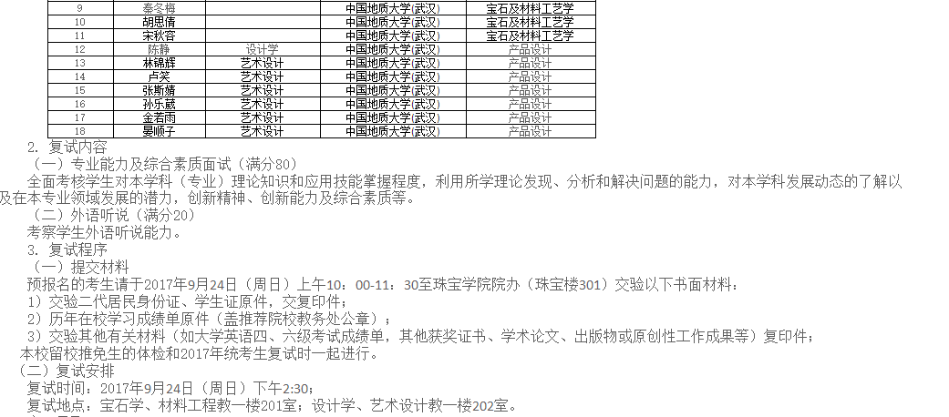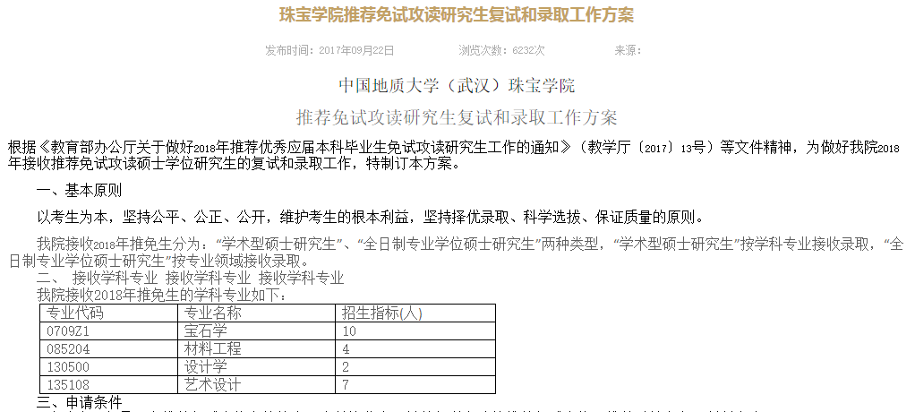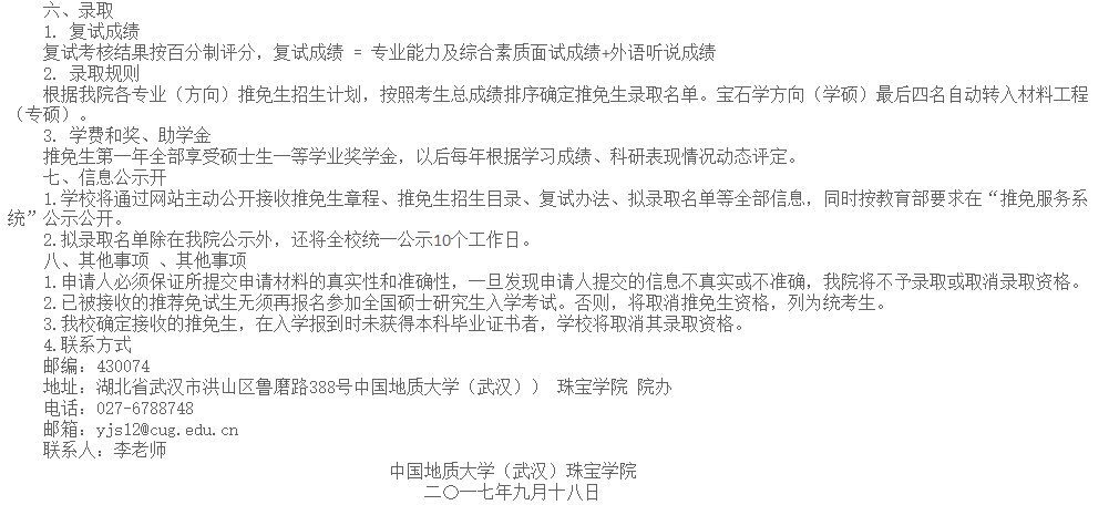 中国地质大学(武汉)珠宝学院2018年推荐免试攻读研究生复试和录取工作方案