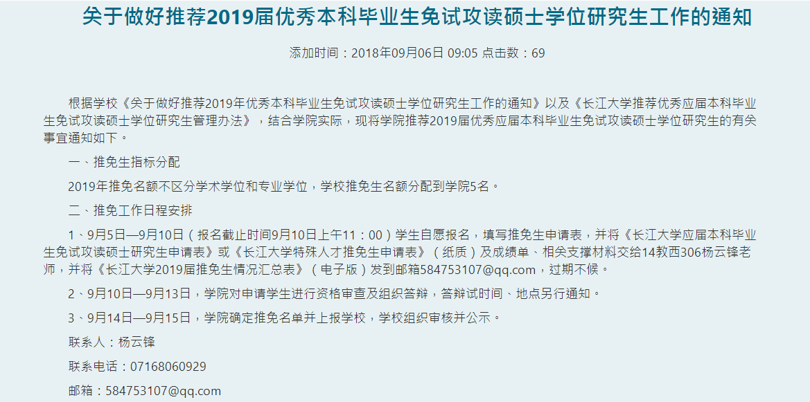 长江大学化学与环境工程学院关于做好推荐2019届优秀本科毕业生免试攻读硕士学位研究生工作的通知
