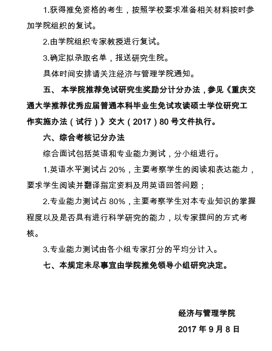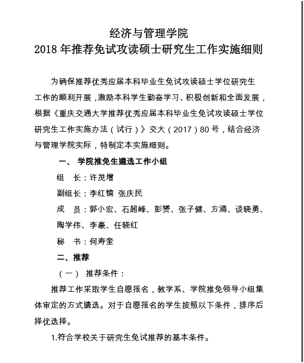 经济与管理学院2018年推荐免试攻读硕士研究生工作实施细则