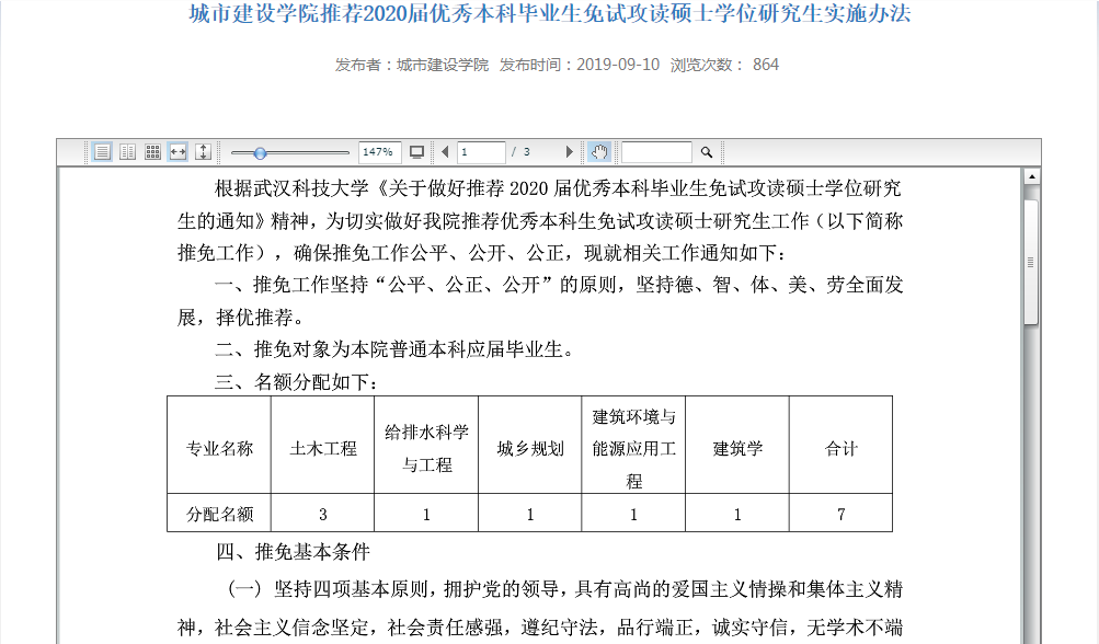 武汉科技大学城市建设学院推荐2020届优秀本科毕业生免试攻读硕士学位研究生实施办法