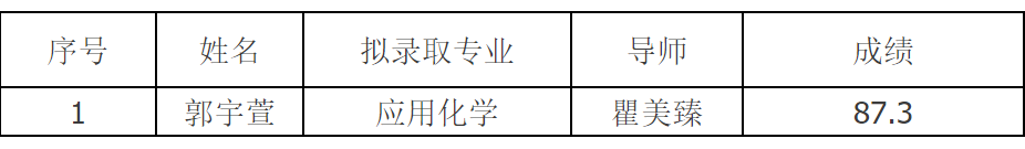 中科院成都有机化学研究所2019年推荐免试硕士研究生拟录取名单公示