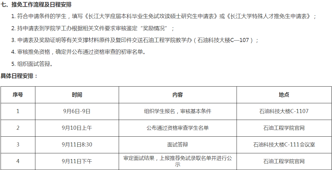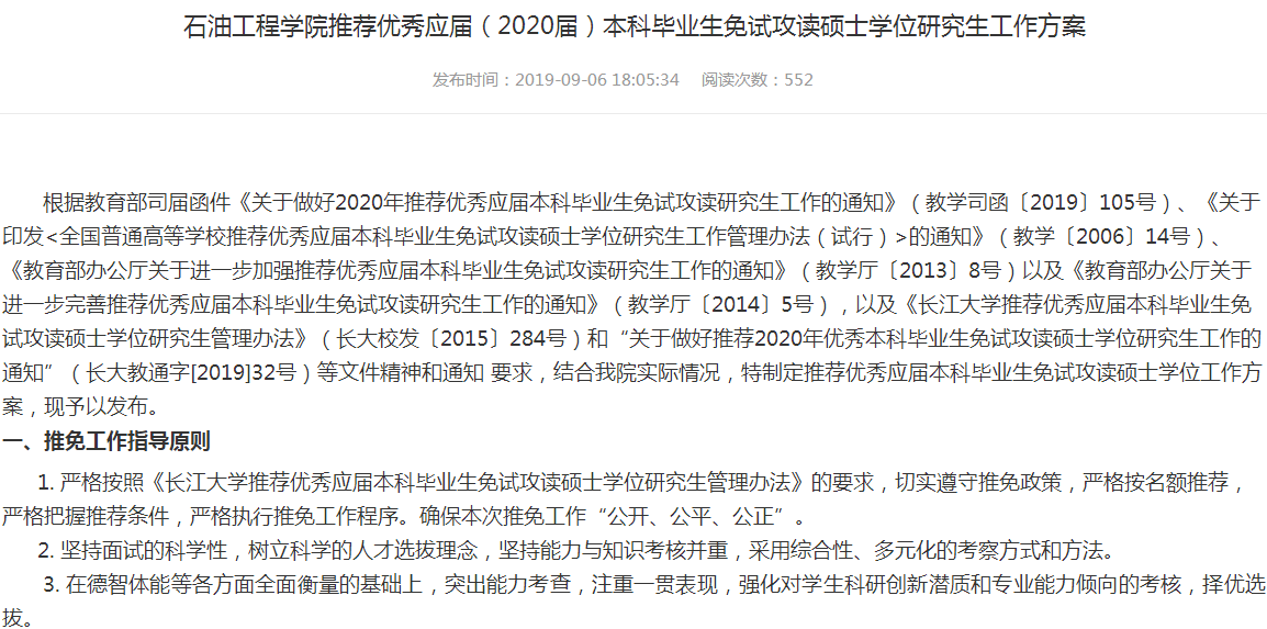 长江大学石油工程学院推荐优秀应届(2020届)本科毕业生免试攻读硕士学位研究生工作方案