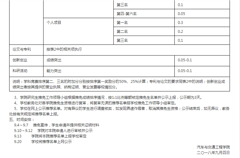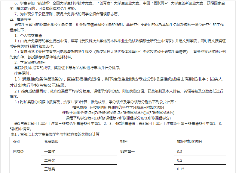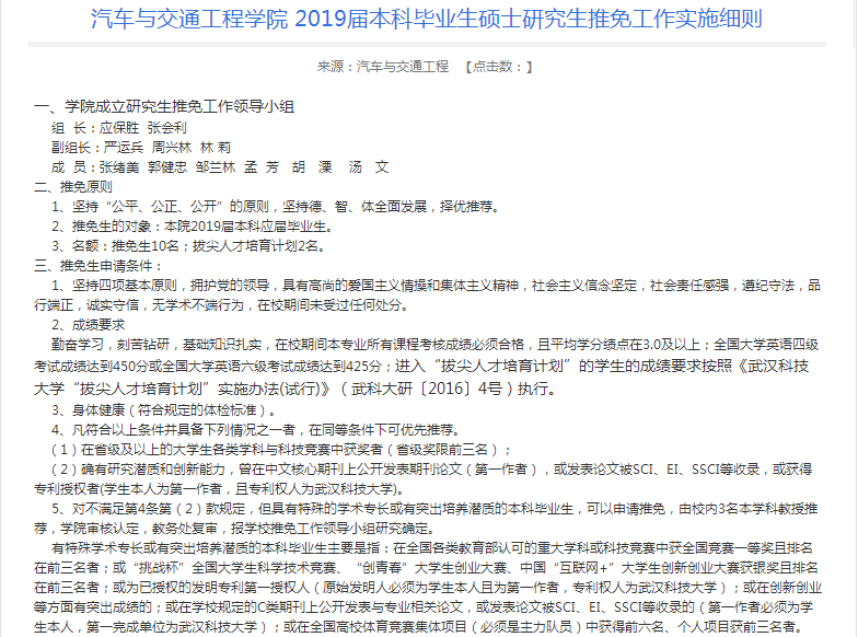 武汉科技大学汽车与交通工程学院 2019届本科毕业生硕士研究生推免工作实施细则