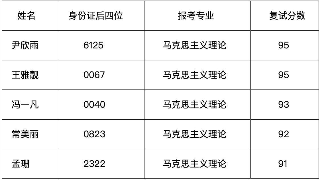 马克思主义学院2020年接收推荐免试硕士研究生拟录取名单公示