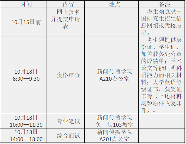 经第一轮推免复试,我院尚有新闻传播学、新闻与传播及出版专业推免名额,拟进行第二次推免复试。现将复试日程安排公示如下: