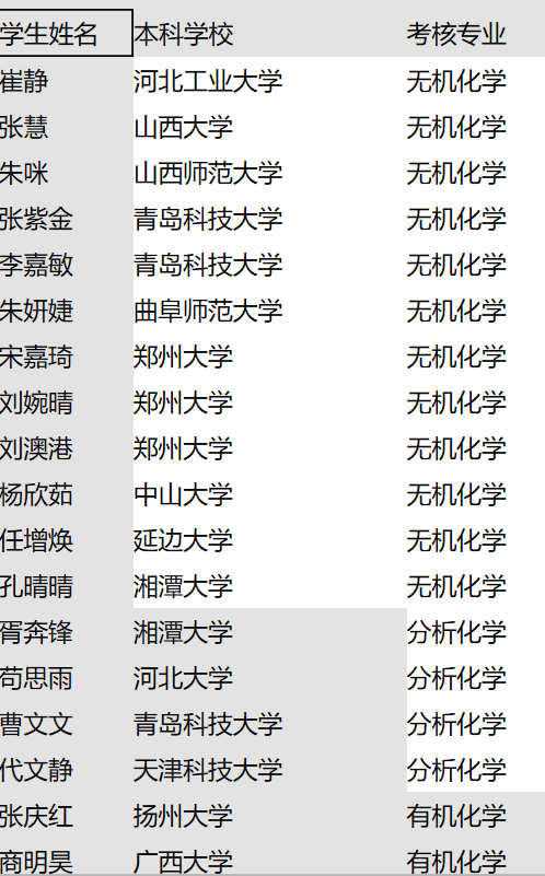 南开大学化学学院2019年9月接收外校推免生考核合格学生名单如下(9月第一批)。