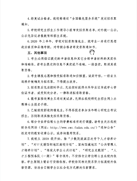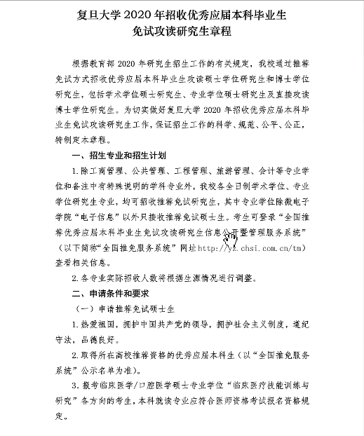复旦大学2020年招收优秀应届本科毕业生免试攻读研究生章程