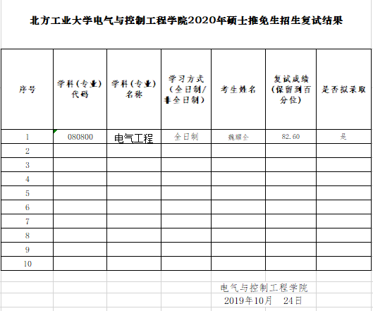 北方工业大学电气与控制工程学院2020年硕士推免生招生复试结果