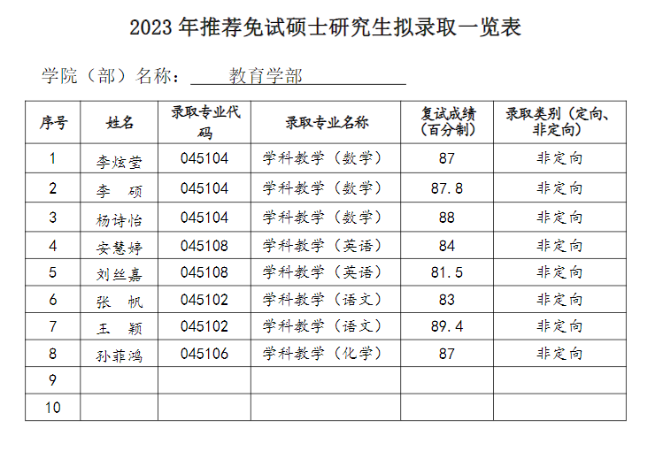 东北林业大学2026年接收推荐免试硕士研究生拟录取名单公示