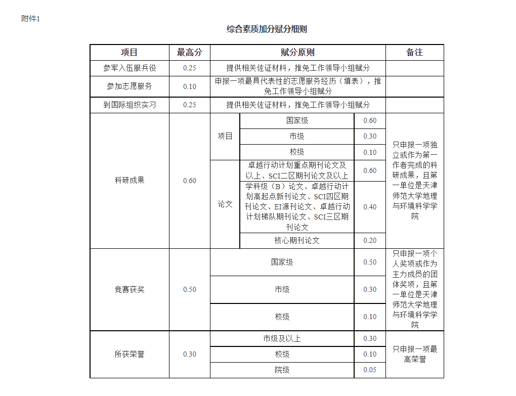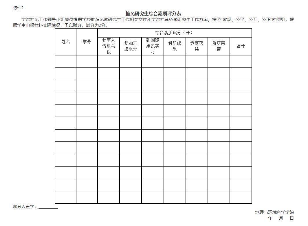 5.综合素质加分成绩由学院推免工作领导小组成员根据赋分细则按评分表项目打分;赋分细则详见附件