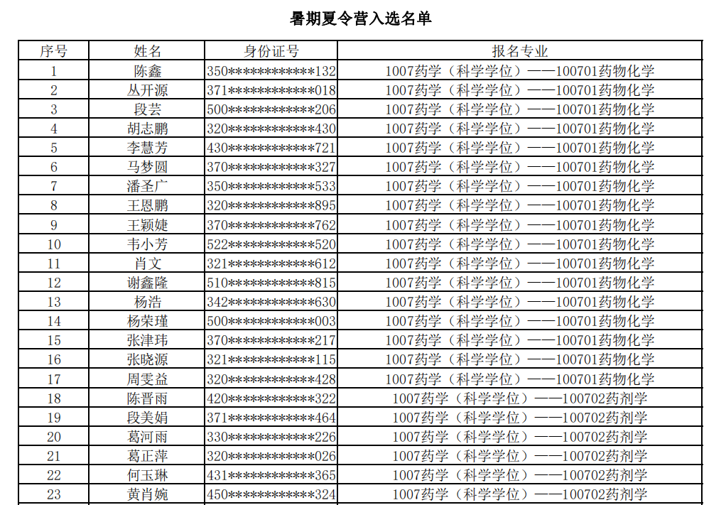 南京中医药大学药学院2022年优秀大学生暑期夏令营将于8月中旬举行,经本人申请,学院遴选,现将营员名单公示如下(见附件)。