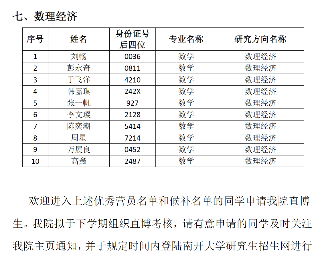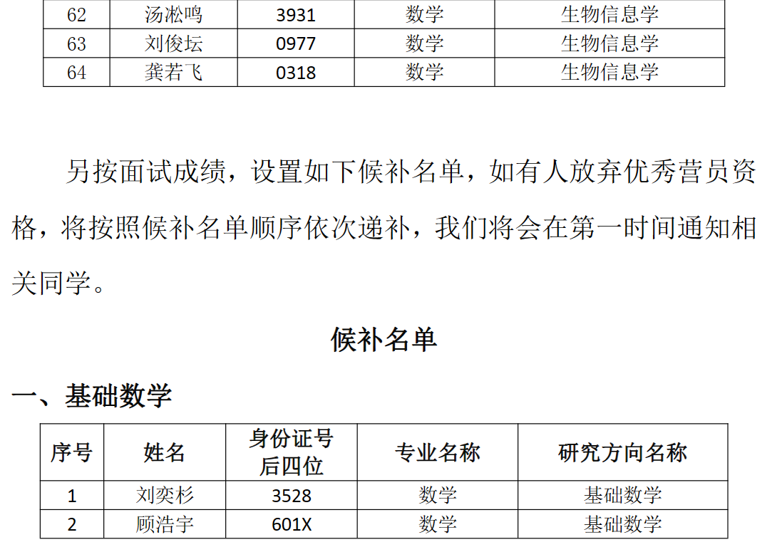 链接:数学科学学院2022年夏令营优秀营员名单及候补名单 (nankai.edu.cn)