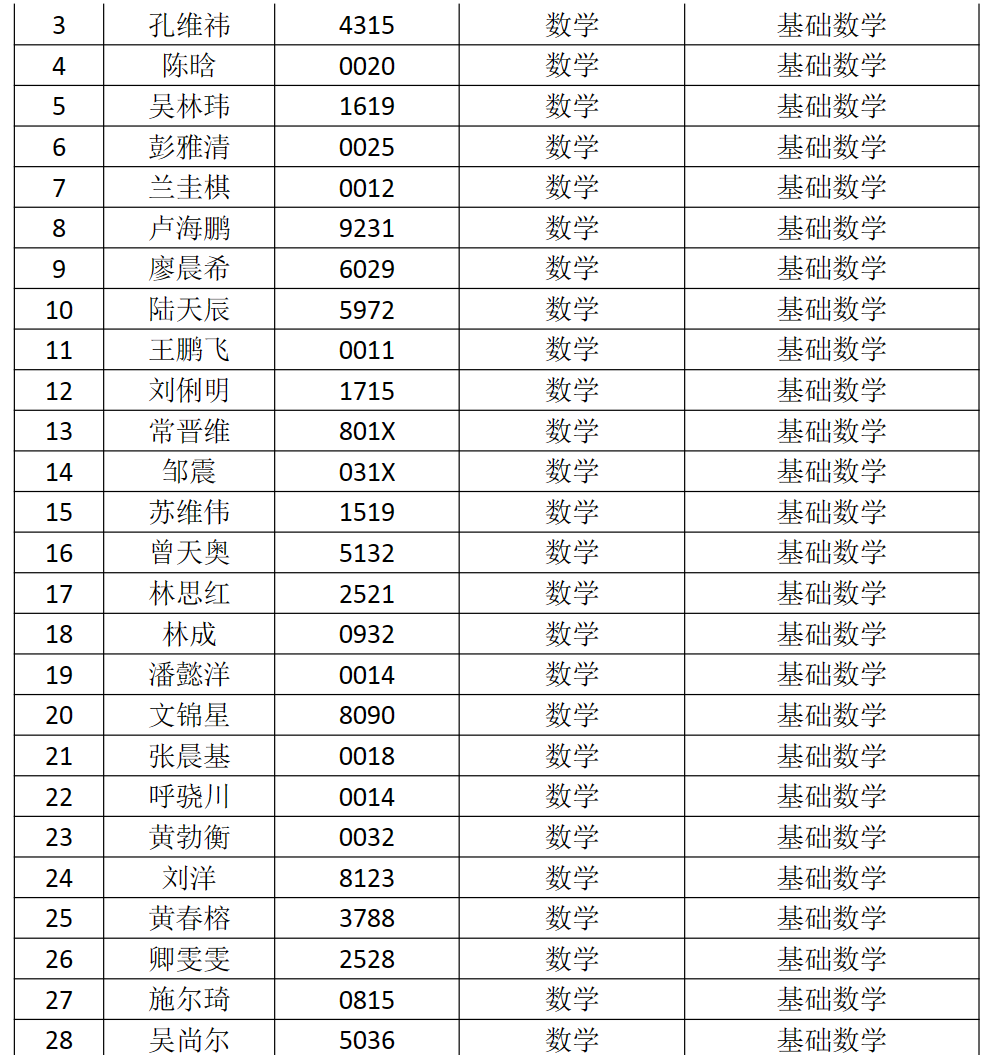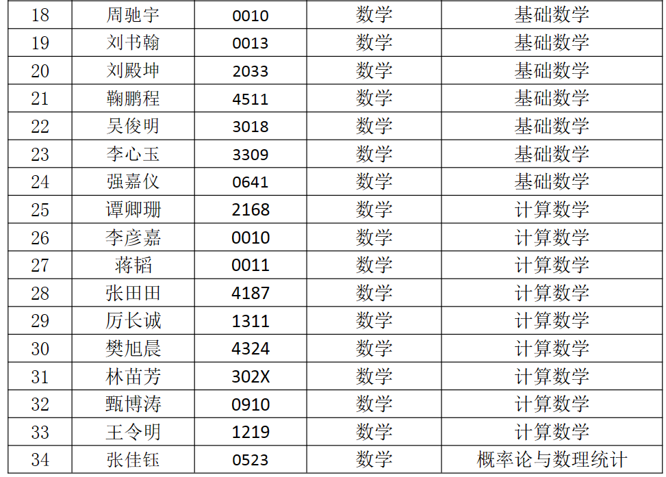 数学科学学院2022年夏令营优秀营员名单及候补名单