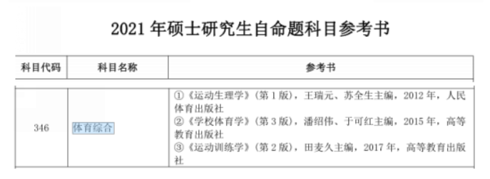 2021年体育学院硕士研究生自命题参考书目
