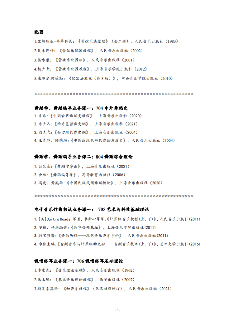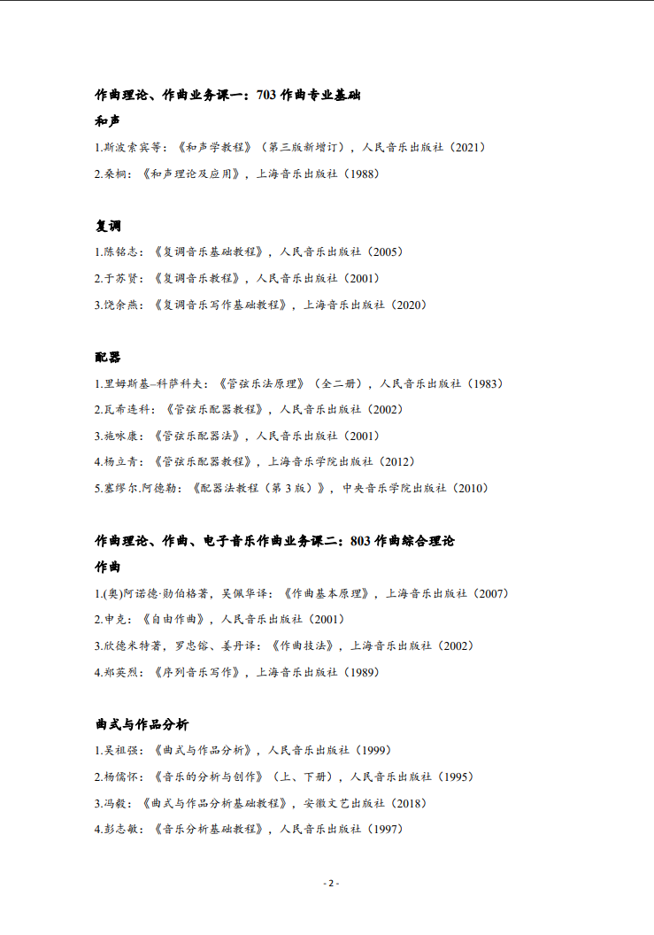 西安音乐学院2022年硕士研究生招生考试主要参考书目