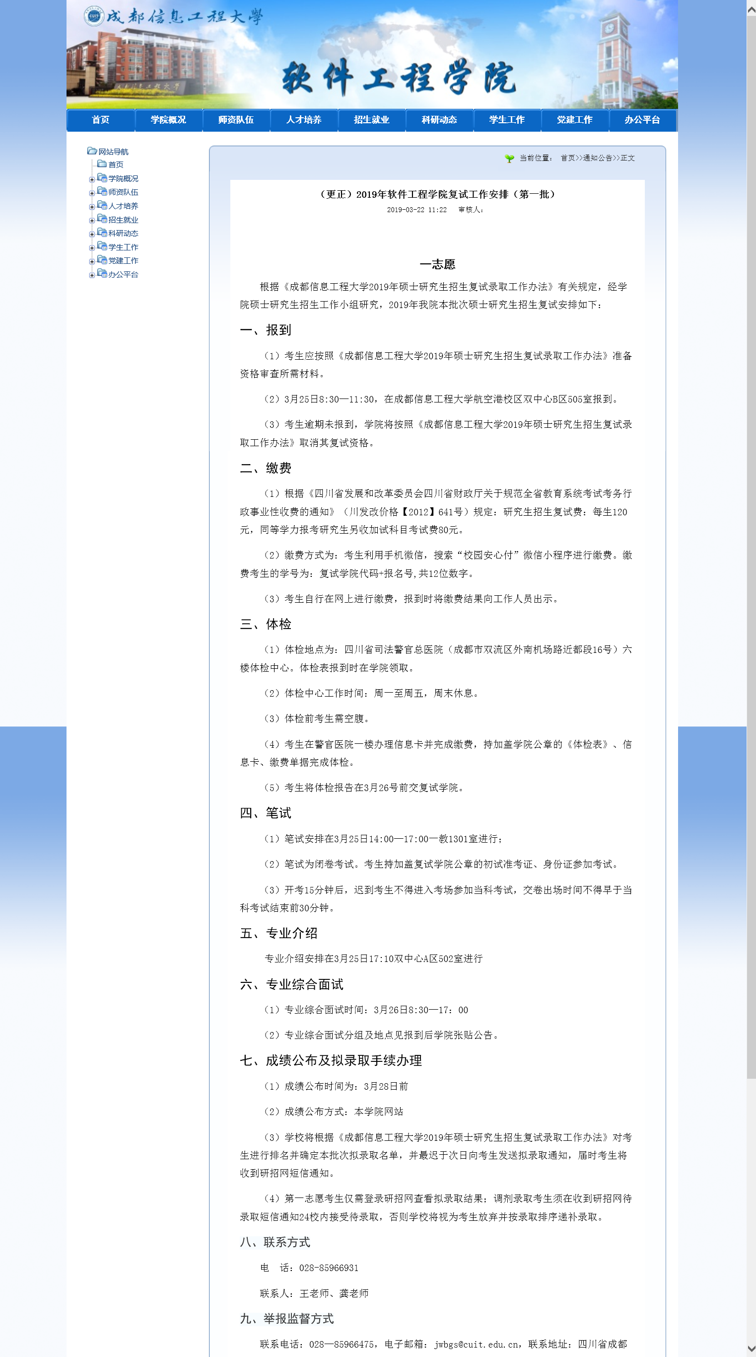 2019年软件工程学院复试工作安排(第一批)-成都信息工程大学-软件工程学院