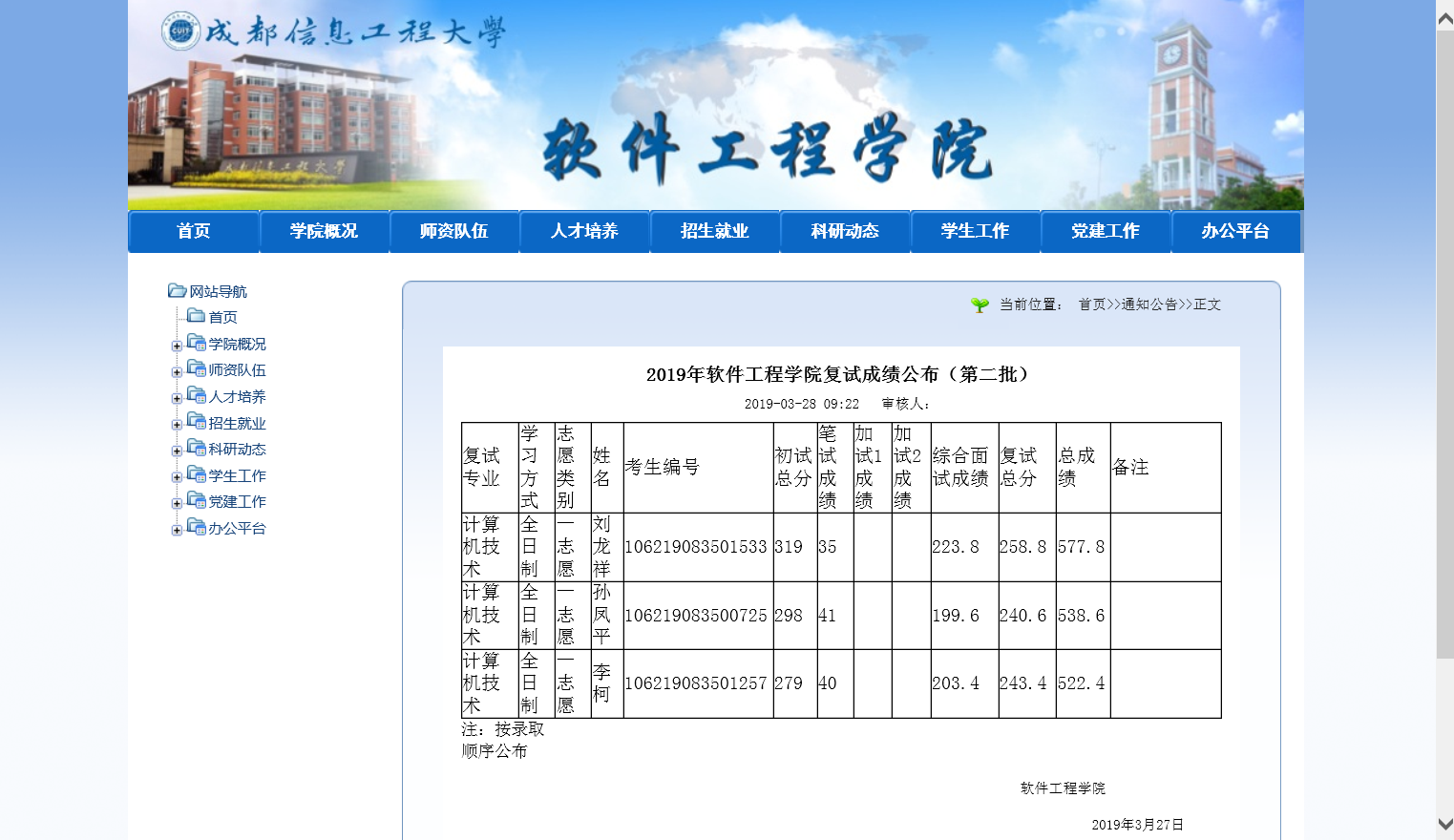 2019年软件工程学院复试成绩公布(第二批)-成都信息工程大学-软件工程学院