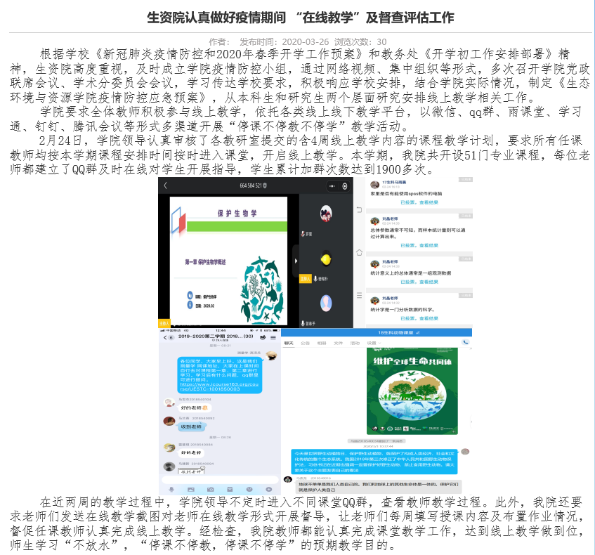 生资院认真做好疫情期间 “在线教学”及督查评估工作