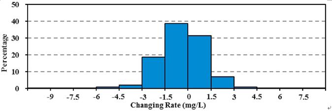 图1 研究区水体TSM浓度变化率直方图
