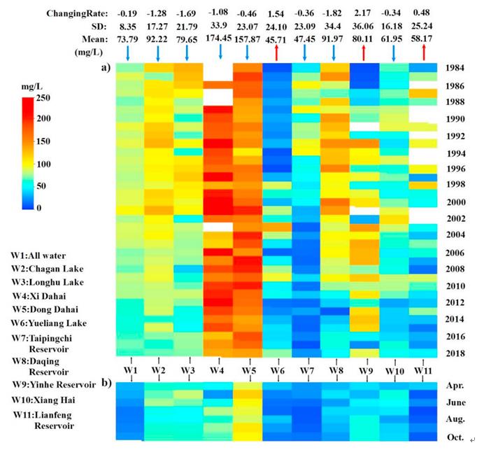 中国科学院东北地理与农业生态研究所水环境遥感研究团队,利用长期的野外调查采样数据,结合时间序列Landsat影像通过遥感手段反演了松嫩平原水体TSM浓度的时空动态模式。在各种遥感参数中,红、蓝波段比值与TSM浓度具有较好的相关性。TSM浓度时空动态分析表明,从1984年到2018年,约60.5%的水体中的年平均TSM浓度呈下降趋势。TSM浓度从4月到7月下降,然后从9月开始上升。研究还发现松嫩平原水体中的TSM具有很高的空间变异性。对主要驱动因素的分析表明,植被因素、风和降水之类的气象因素可能会影响TSM浓度的变化。此外,长时间序列的Landsat数据可用于内陆水域TSM历史变化的监测。相关研究成果可为人类活动和气候变化下的水资源管理提供理论支持。