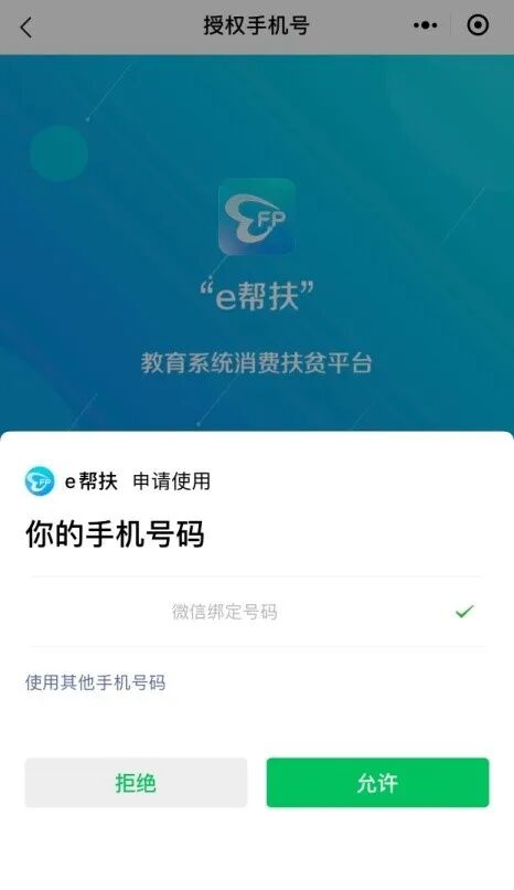 第三步:点击“授权手机号”,可选择“微信绑定号码”,也可“使用其他手机号码”,点击“允许”。