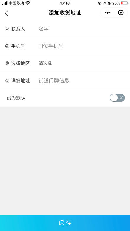 第六步:点击“我的”进入个人中心界面,点击“地址管理”,点击最下方“新建收货地址”,添加收货地址后,点击“保存”。