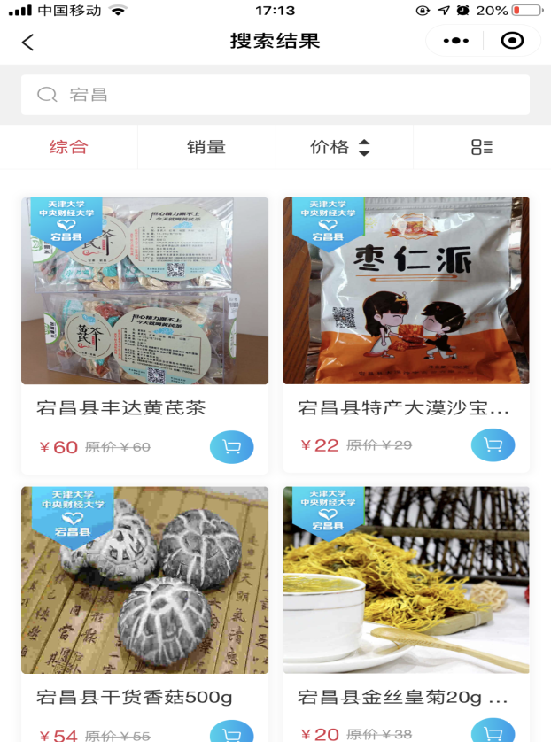 第七步:返回小程序首页,可搜索框中输入“宕昌”,出现宕昌农产品页面。