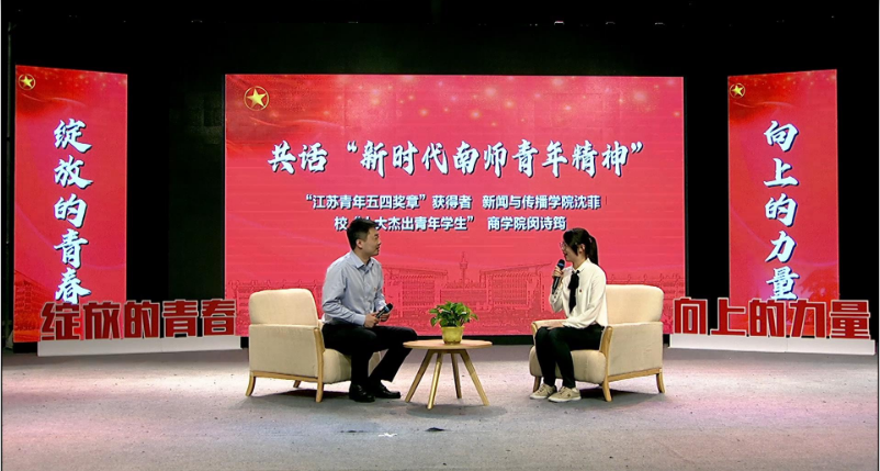 在“爱国奉献、坚定理想信念”主题公开课中,“江苏青年五四奖章”获得者、新闻与传播学院学生辅导员沈菲老师与校“十大杰出青年学生”商学院闵诗筠同学共话“新时代南师青年精神”,他们从各自经历出发,围绕爱国、力行、奉献等关键词,深入探讨了青年精神的内涵,鼓励大家把个人成长融入到国家发展的历史大潮中,做一名知行合一的南师青年。