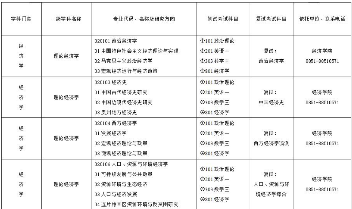 经济学院2019年硕士研究生招生专业目录