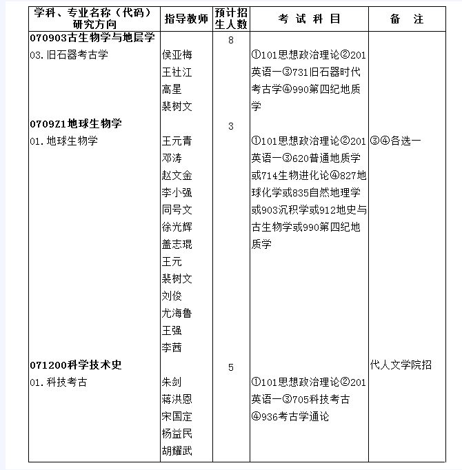中国科学院古脊椎动物与古人类研究所2017年攻读硕士学位研究生招生目录