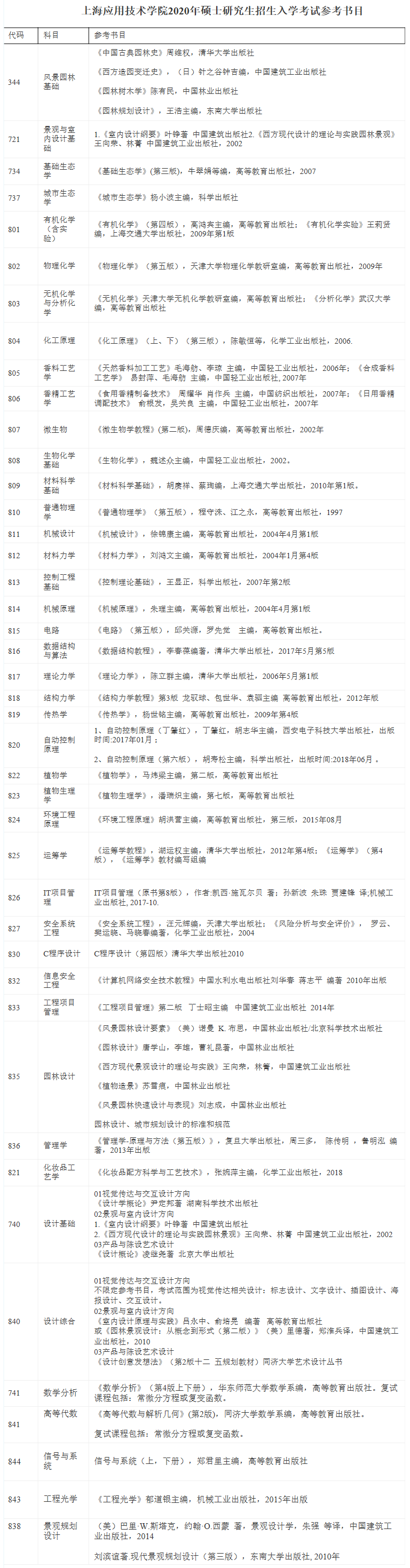 上海应用技术大学2021年硕士研究生招生专业目录及参考书目