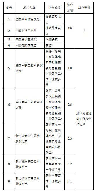 3. 重大艺术比赛(非艺术类专业)清单和加分上限