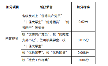 备注:省级及以上其他荣誉称号由学生提供相关证明,交由学院推免生遴选工作领导小组认定是否可以加分。