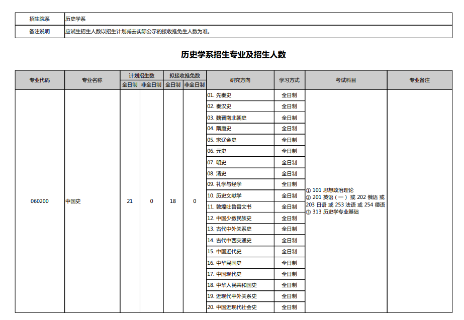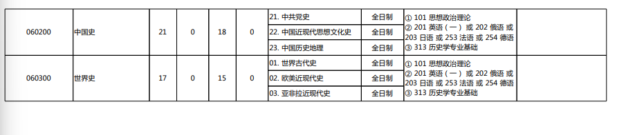 首都师范大学2021年招收攻读硕士学位研究生历史学院专业目录