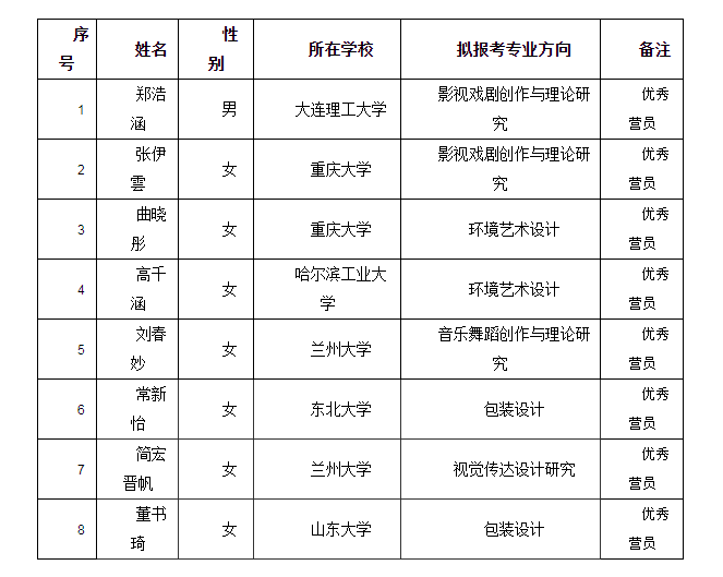 2022年艺术学院大学生暑期云夏令营优秀营员名单