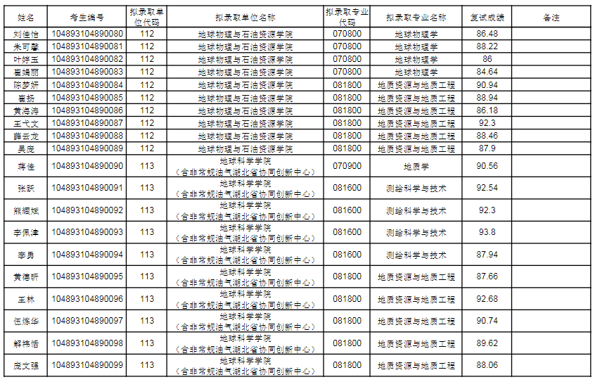 附:长江大学2023年免试攻读硕士研究生拟录取名单