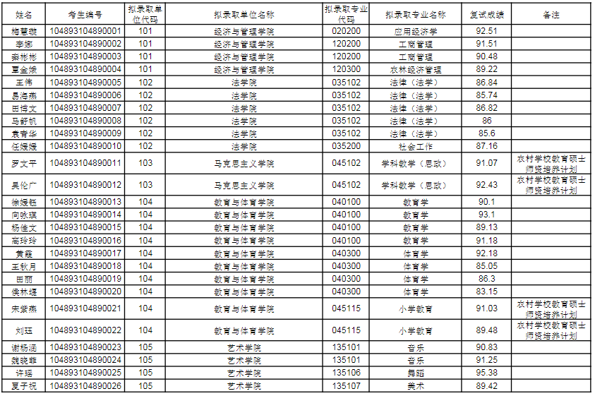 根据《教育部关于印发<2023年全国硕士研究生招生工作管理规定>的通知》(教学〔2022〕3号)等有关文件和要求,现将我校2023年免试攻读硕士研究生拟录取名单公示。正式录取名单由湖北省招办和教育部审查通过后确定,如在审核过程中发现有不合格的考生,学校将按相关规定取消其录取资格。