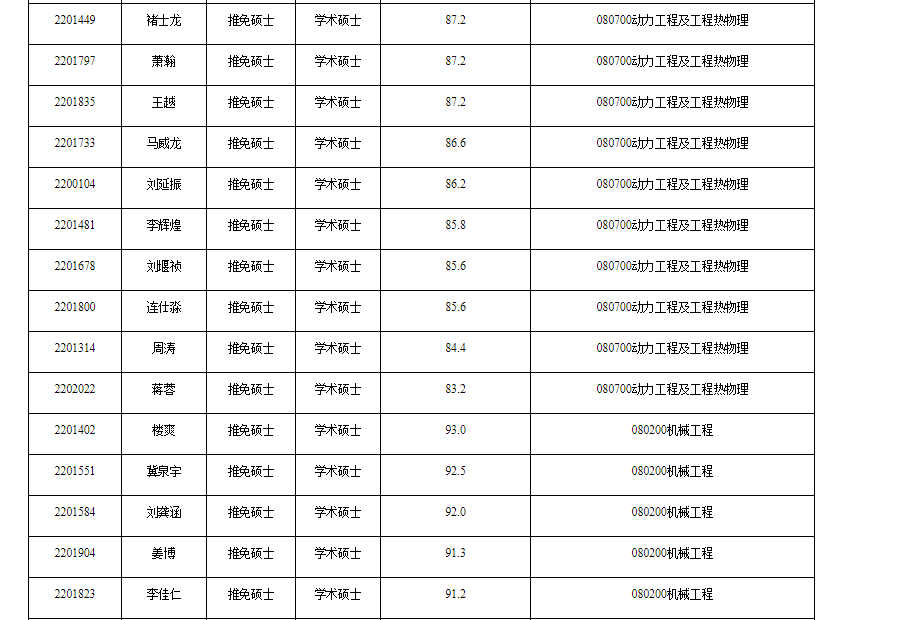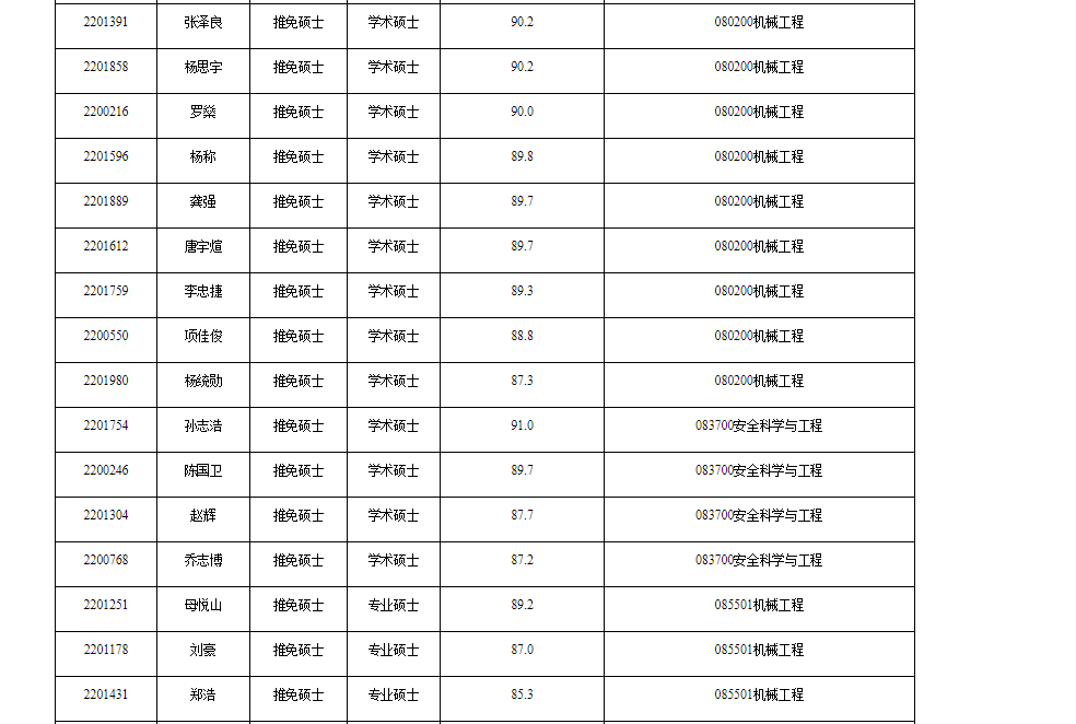 经学院复试小组考核、学院招生工作领导小组审定,机电工程学院2022年接收推荐免试研究生复试拟接收结果如下,请拟接收考生务必在9月28日通过教育部“推免服务系统”(http://yz.chsi.com.cn/tm)尽快完成网上报名和拟录取网上确认流程,才能确定推免生拟录取资格。最终录取结果以研究生院网站公布结果为准。